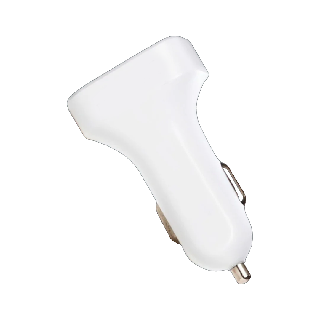 White 2.4A dual USB car charger for simultaneous charging of two devices. Compact and safe for all USB-powered devices. Order more units and enjoy better per-item pricing in the UK.